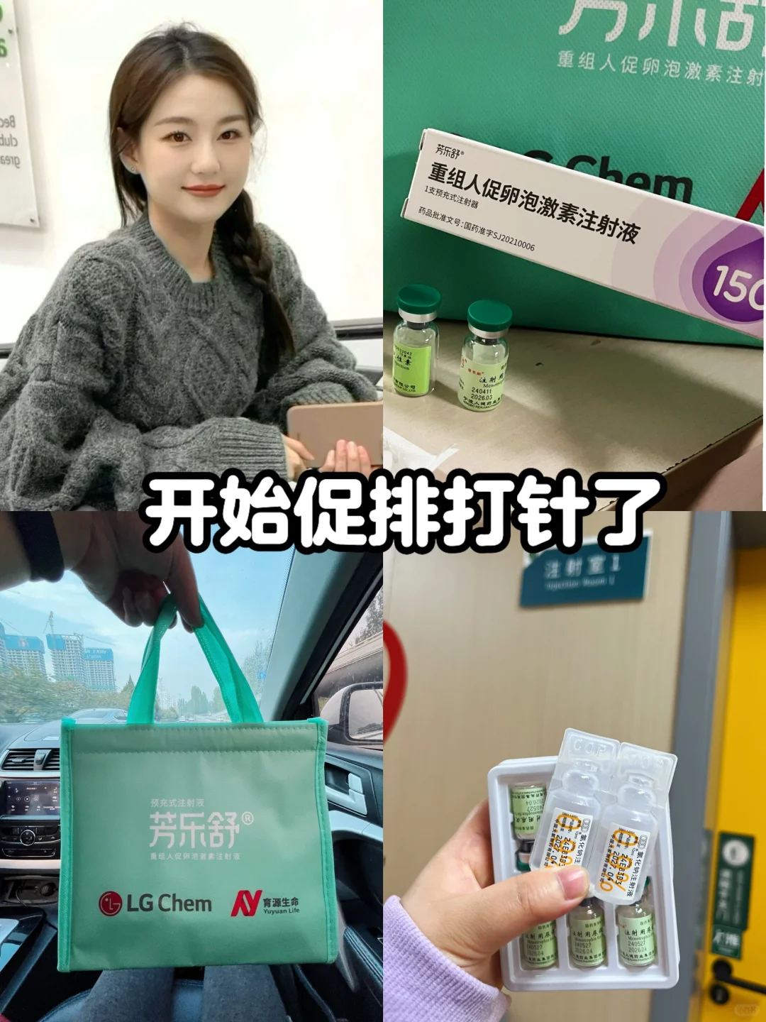‼️一个是芳乐舒(150单位/支):自带针头,需要冷藏保存,取的时候医院给保温袋和冰水(收了10块,最后不用了交回去会退回)回了家冰箱冷藏,是打在肚子上的;